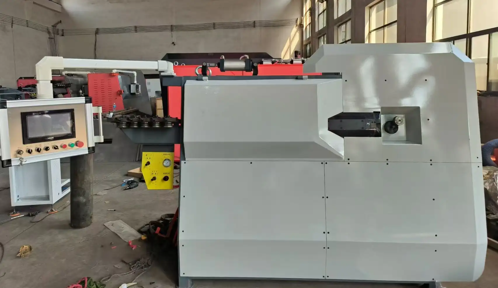 Станок для гибки стальных хомутов с ЧПУ VLGW3-8 использует синхронный серводвигатель с постоянными магнитами, обеспечивающий быстрый отклик и высокую точность. Основные компоненты выкованы и закалены для обеспечения долговечности.
